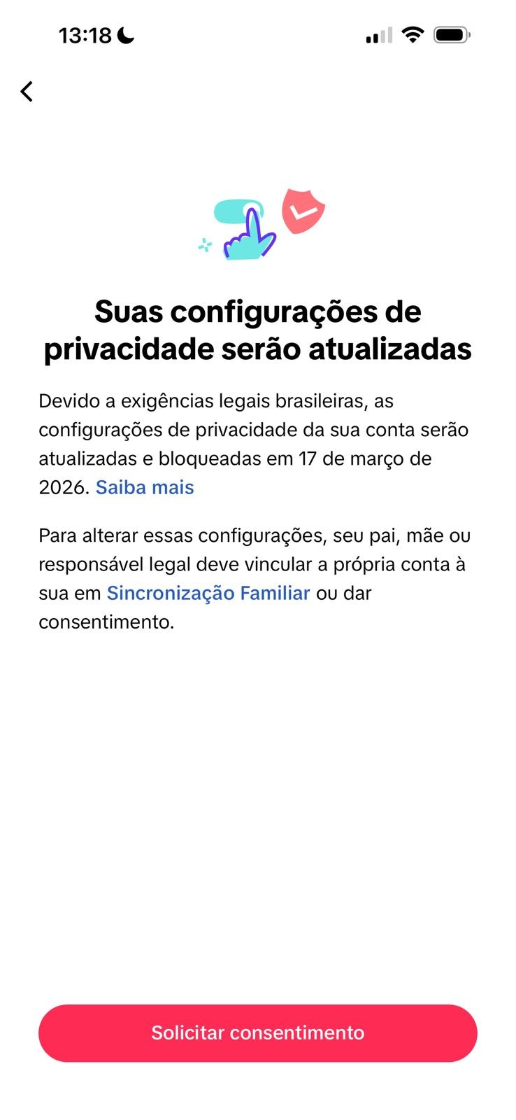 ECA Digital: nova lei vai mudar regras para crianças e adolescentes na internet Redes sociais e outros serviços online com conteúdo impróprio para crianças e adolescentes devem verificar a idade de usuários a partir desta terça-feira (17). E não podem usar bloqueios simples, como o botão "Sim, tenho mais de 18 anos". A medida está prevista no Estatuto Digital da Criança e do Adolescente (ECA Digital), sancionado em setembro de 2025. A discussão Ele também ficou conhecido como Lei Felca porque a aprovação aconteceu após o vídeo do influenciador sobre adultização. 🗒️ Tem alguma sugestão de reportagem? Mande para o g1 O ECA Digital determina que as plataformas direcionadas a crianças e adolescentes ou com acesso provável por esse público devem "adotar mecanismos para proporcionar experiências adequadas à idade". A lei determina que lojas de aplicativos e sistemas operacionais devem tomar medidas para aferir a idade ou a faixa etária dos usuários. Essa informação deverá ser enviada para plataformas como redes sociais, que precisarão oferecer experiência adequada para aquela pessoa. Mas o ECA Digital diz que as plataformas também são responsáveis por impedir o acesso indevido de crianças e adolescentes. A autodeclaração – o botão "Sim, tenho mais de 16 anos" – está proibida pela lei. Assim, serviços online devem adotar métodos de verificação mais robustos, incluindo: 👨💻 análise de comportamento, que faz estimativa de faixa etária com base na navegação do usuário; 🤳 envio de selfie, que estima a idade aproximada a partir de técnicas de reconhecimento facial; 🪪 envio de documentação, que permite confirmar a idade exata. Um decreto do governo federal vai regulamentar os requisitos mínimos de transparência e segurança dos mecanismos de verificação de idade. Essa verificação não acontecerá em todas as plataformas, mas será exigida em serviços online que podem colocar menores de idade em risco, disse ao g1 a coordenadora do Comitê Gestor da Internet no Brasil (CGI.br), Renata Mielli. "Ela será utilizada para os provedores de aplicação direcionados a crianças e adolescentes e para os que oferecem risco à integridade física e mental, possibilidade de exploração e vendem produtos não adequados para crianças e adolescentes", afirmou. Configuração de privacidade TikTok Reprodução Ao exigir a verificação de idade em determinados serviços sem autodeclaração, o ECA Digital cria um novo fator de proteção a crianças e adolescentes na internet, avaliou Mielli. "As lojas de aplicativos precisam adotar medidas para vedar o acesso irrestrito de crianças e adolescentes a conteúdos inadequados. Há uma combinação entre a aferição da idade, a classificação indicativa da aplicação e a supervisão parental", afirmou. Como funciona a verificação de idade de Roblox, Discord, YouTube e outras Menores de 16 anos terão que vincular redes sociais com as de seus pais Ainda de acordo com o ECA Digital, a verificação deve garantir a privacidade dos usuários e não pode usar os dados para fins além da verificação de idade. Plataformas que não demonstrarem estar agindo para proteger crianças e adolescentes poderão ser punidas com advertência, multa de até 10% do faturamento ou R$ 50 milhões por infração, suspensão ou proibição no Brasil. A aplicação da lei será monitorada pela Agência Nacional de Proteção de Dados (ANPD), que fez um levantamento sobre diferentes ferramentas de verificação de idade na internet, como a inferência a partir do tipo de conteúdo acessado e a análise de documentos. O ECA Digital entraria em vigor em setembro de 2026, mas foi antecipado para 17 de março por uma medida provisória do presidente Lula, aprovada pelo Congresso. As plataformas não serão prejudicadas por essa diminuição do prazo porque eventuais sanções serão aplicadas em etapas, disse Mielli, do CGI.br. E, como acontece com a Lei Geral de Proteção de Dados (LGPD), as empresas têm o direito de se defender em processos administrativos. "Para aplicar qualquer sanção pecuniária [financeira], existem sanções anteriores. Tem um processo que precisa ser seguido com procedimentos de fiscalização, notificação e advertência", explicou. "A lei não foi feita apenas para redes sociais e jogos online, mas é claro que são esses grandes players que representam o maior risco para crianças e adolescentes. Essas empresas possuem ferramentas para [realizar] aferição de idade em outras praças nas quais elas prestam esse serviço, então, não é uma novidade para nenhuma delas". Saiba como ativar proteção para controlar tempo e atividade de crianças no celular